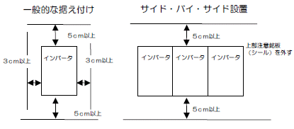 インバータを設置する場合、以下の設置スペースを設けてください。